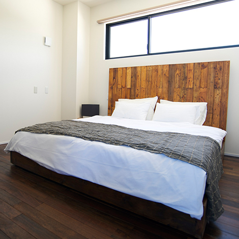 お部屋は、ダブルタイプとツインタイプの2種類ございます。(どちらも同料金) 1室はクイーンサイズのベッドをご用意したダブルルーム、他2室はセミダブルサイズのベッドを2つご用意したツインルームとなります。 インテリアは安心の自然素材で構成されており、快適な寝心地を約束するsertaのマットレスベッドで安らぎの休日がお過ごしいただけます。